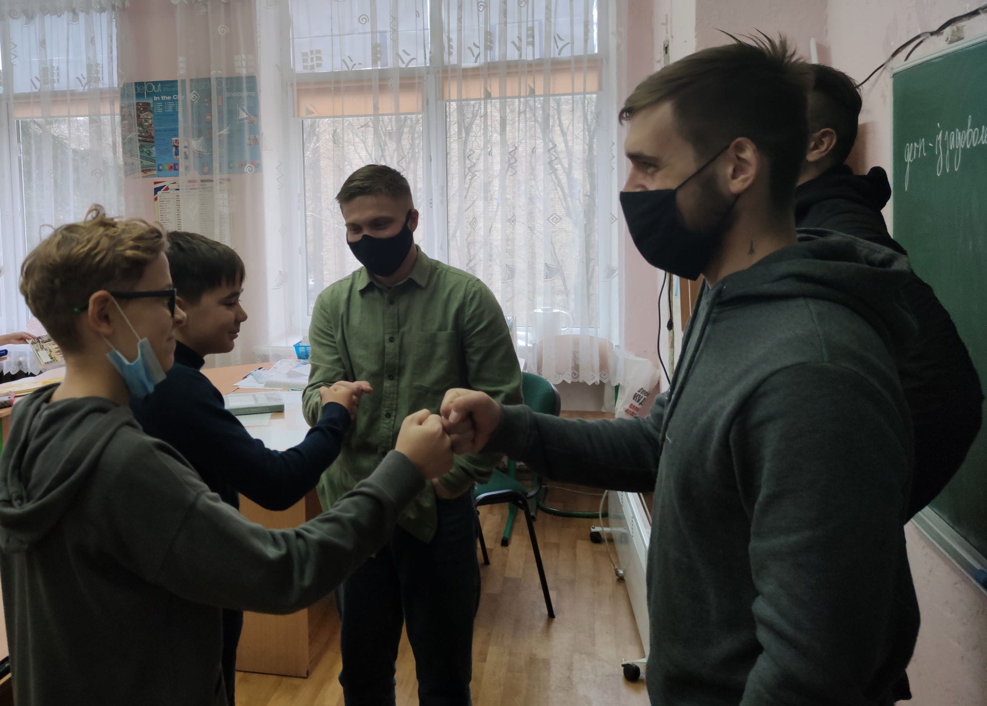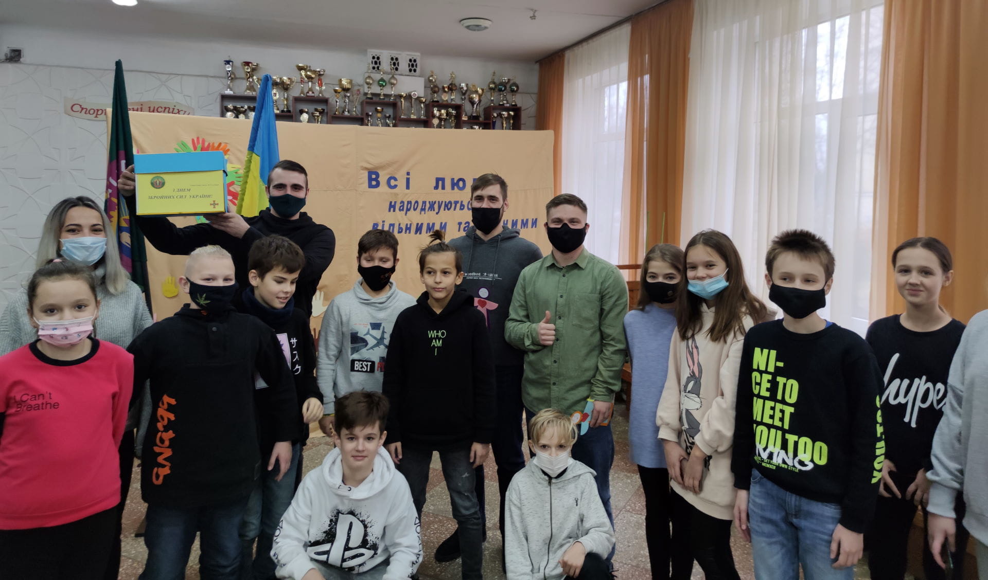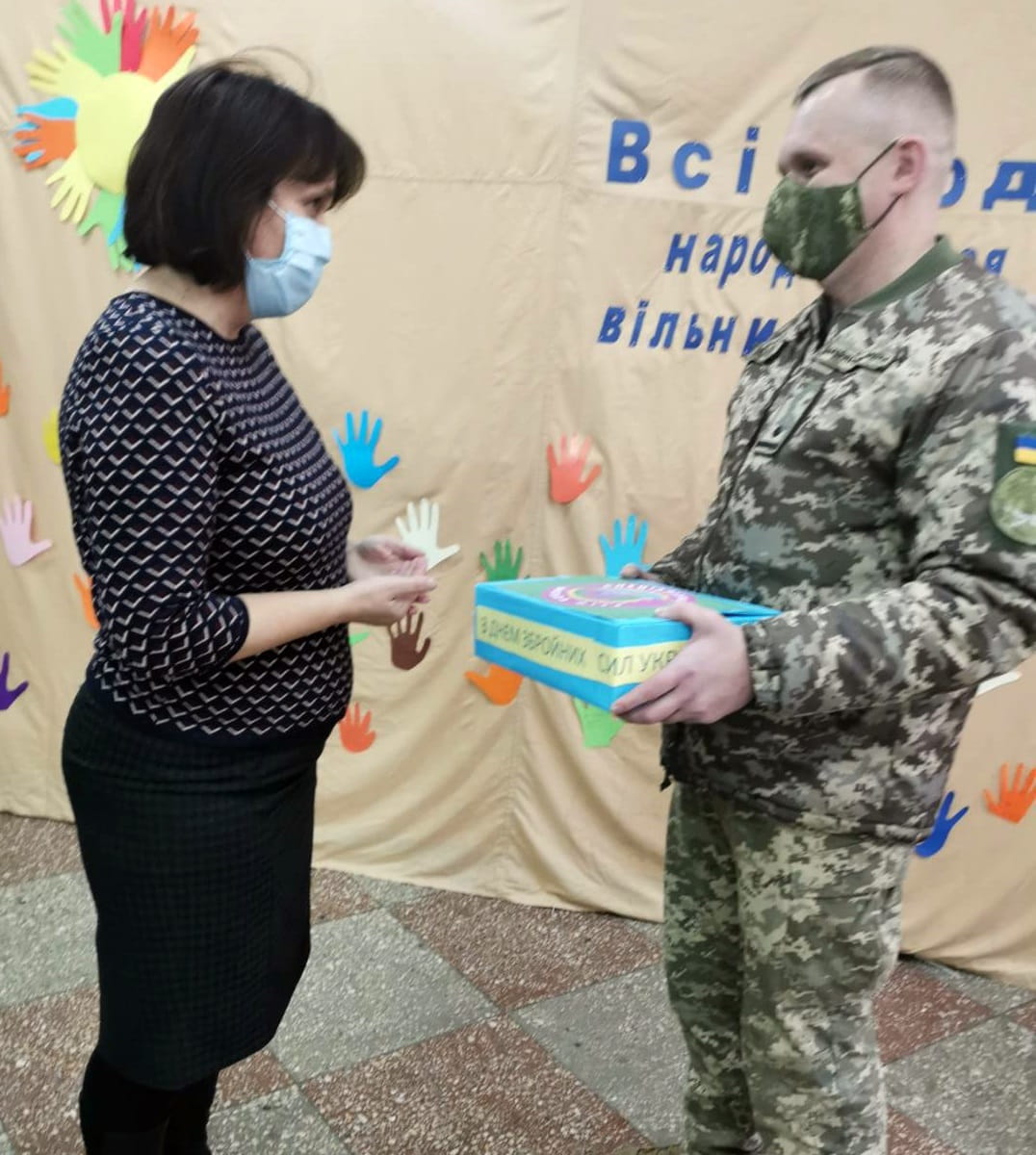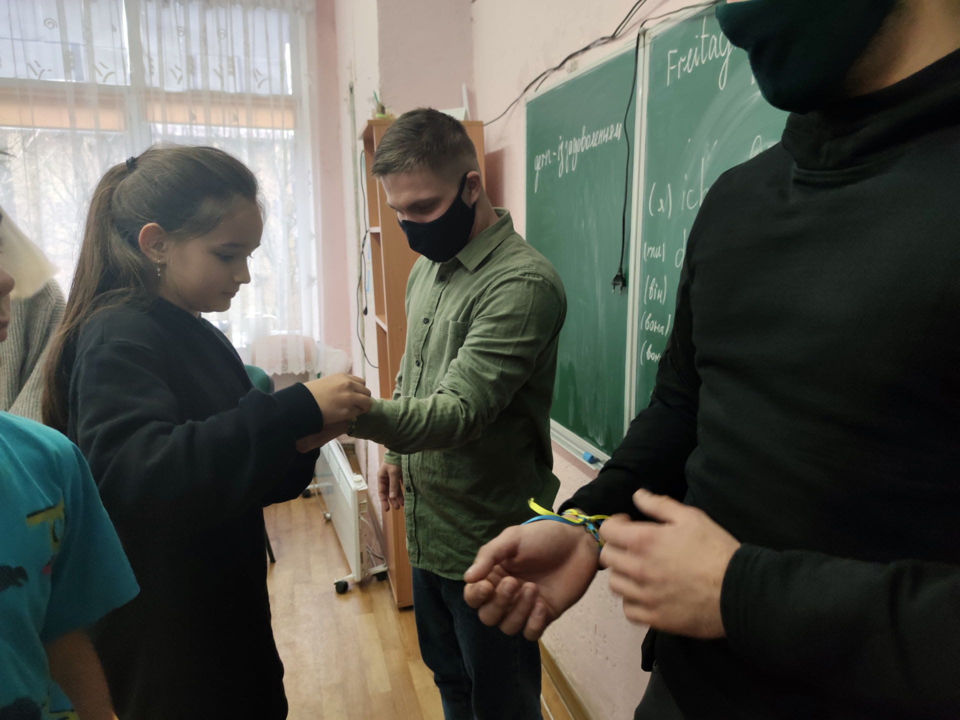 4 грудня до стін нашої школи для зустрічі із 1-А, 5-Б і 5-В класами завітали військовий волонтер Світлана Бондаренко і троє розвідників - Олександр, Олексій та Дмитро, котрі щедро ділилися зворушливими історіями зі свого військового життя, закликали бути патріотами рідної землі та не припиняти нести у серці віру у світле майбутнє України. Вітальні листівки, малюнки, жовто-блакитні браслети-обереги й янголята-охоронці, виготовлені дітьми заздалегідь, принесли гостям неймовірну душевну радість, а учням - гордість за тих, хто боронив і боронить кордони незалежної України.