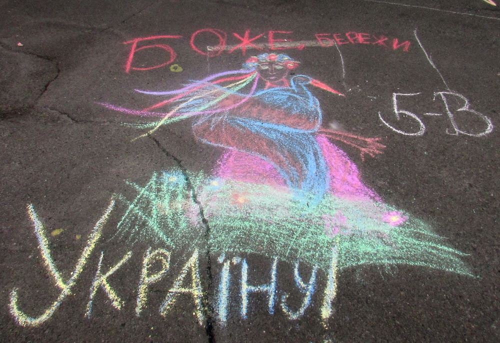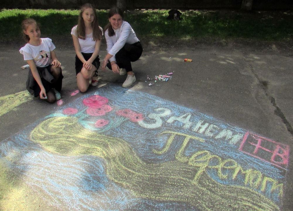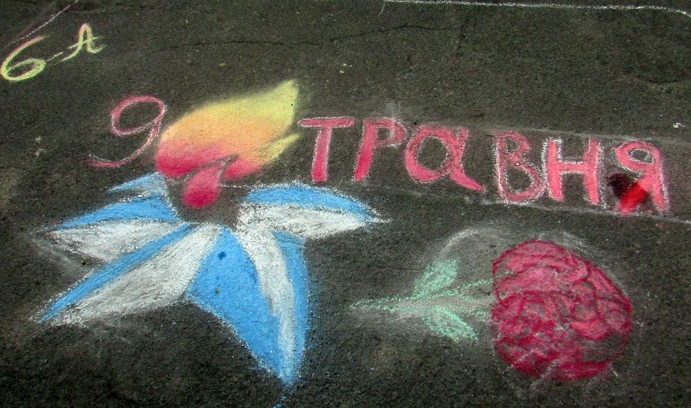 Шкільне самоврядування (керівник – педагог-організатор Толстік К. О.) запропонувало учням 5-7 класів висловити своє ставлення до Дня Перемоги через малюнок на асфальті «Солдатський етюдник».