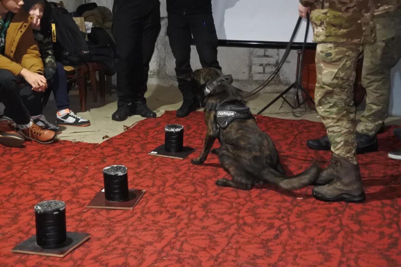 Службові собаки показали вміння виконувати команди на відстані за умовними сигналами, шукати тютюнові вироби та наркотики, затримувати порушників. Учні були безпосередніми учасниками виступу.