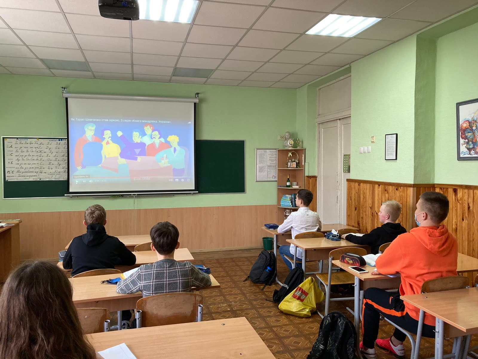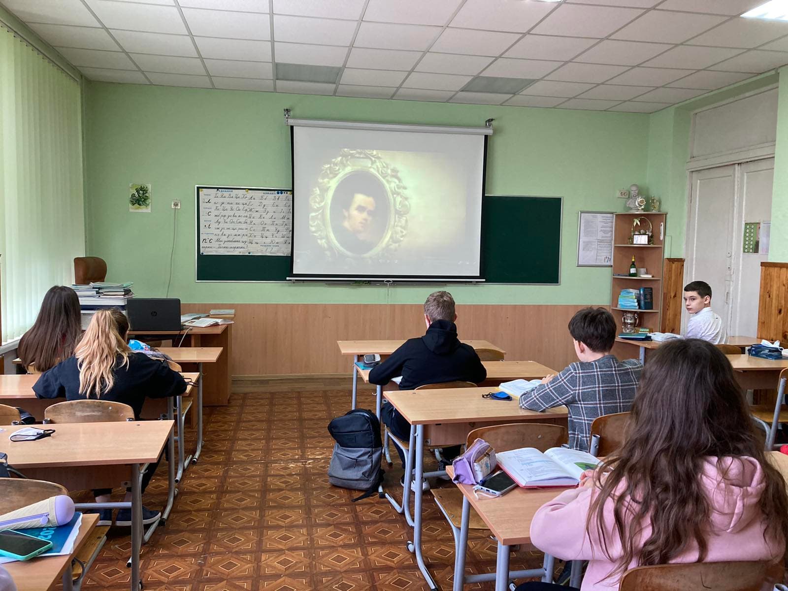 У коридорах, вестибюлі та у бібліотеці закладу освіти вчителями української мови та літератури, бібліотекарем Виноградовою Г.О. було організовано виставку стіннівок «Тарас Шевченко – постать крізь століття» для здобувачів освіти закладу, ініційовано проведення соціальної акції з популяризації творчості Кобзаря «#читання_Кобзар» зі зйомкою відеоролика з подальшим його розміщенням у мережі на сторінці «Все буде добре_ОК!». Тематичну експрес-інформацію «Великий співець українського слова» прослухали здобувачі освіти 5-11 класів на уроках української мови та літератури 9-10 березня. На виховних годинах (1-5 класи – очно, 6-11 класи – дистанційно) класні керівники провели у 1-А класі тематичну бесіду «Маленьким про Великого Тараса» (вчитель Дехтяренко Е.В.), у 4-Г класі літературну імпрезу «Ми чуємо тебе, Кобзарю, крізь століття» (вчитель Філоненко В.М.), у 4-6 класах літературний квест «Шлях до Шевченка», у 7-9 класах інтерактивний урок «Тарас Шевченко – син України», у 10-11 класах годину поезії «І лине над землею Шевченкове слово».
