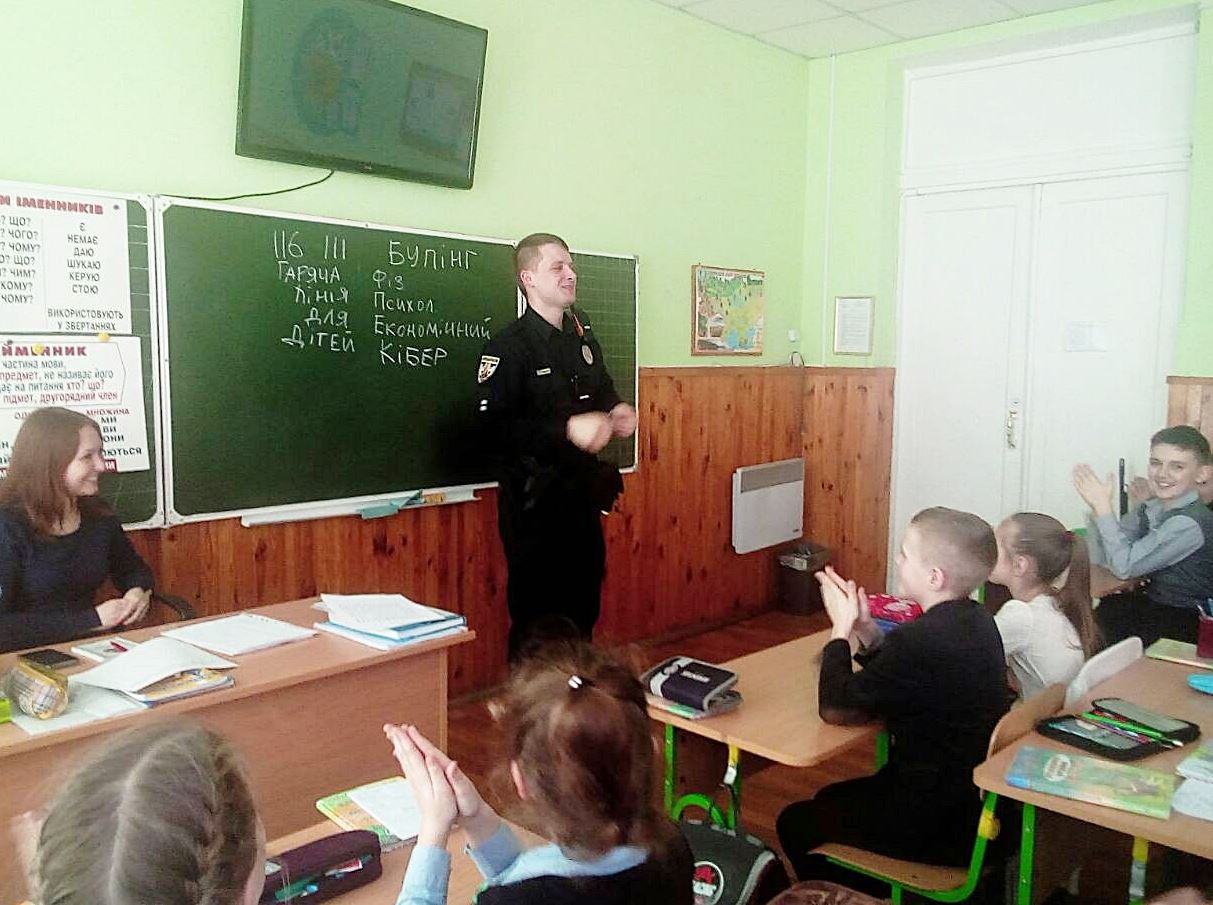 2 квітня із п’ятикласниками та чотирикласниками школи говорив інспектор патрульної поліції лейтенант Лободжінський Максим Вікторович про можливі наслідки поганої поведінки. Цього разу – про булінг - соціальну проблему всього світу. Булінг (bullying, від анг. bully — хуліган, забіяка, задирака, грубіян, насильник) визначається як утиск, дискримінація, цькування. Цей термін означає тривалий процес свідомого жорстокого ставлення (фізичного і психічного) з боку дитини або групи до іншої дитини або інших дітей. Мотивацією до булінгу стають заздрість, помста, відчуття неприязні, прагнення відновити справедливість, боротьба за владу, потреба підпорядкування лідерові, нейтралізації суперника, самоствердження тощо аж до задоволення садистських потреб окремих осіб.