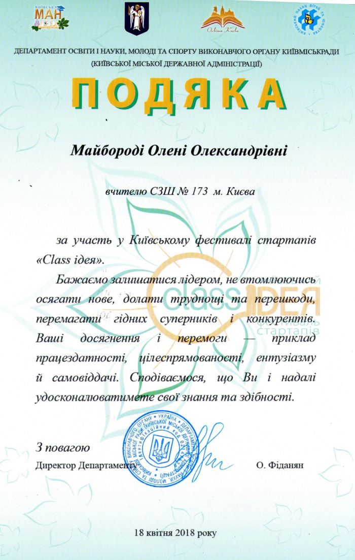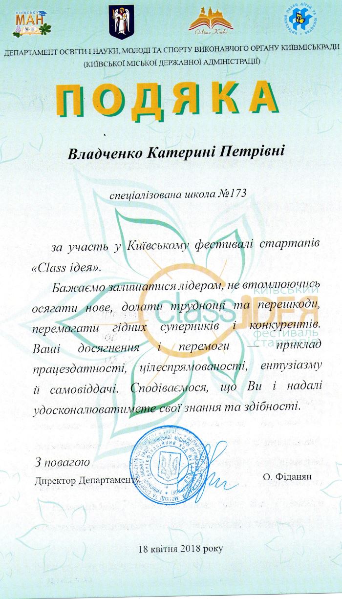 20.04.201818 квітня 2018 року у ККПНЗ «Київський Палац дітей та юнацтва» відбувся Фестиваль стартапів «Сlass ідея» серед здобувачів освіти та педагогічних працівників.