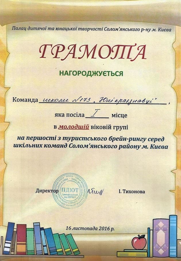 Призери туристського брейн-рингу серед команд Солом'янського району (керівник Цюпер О. В.)
