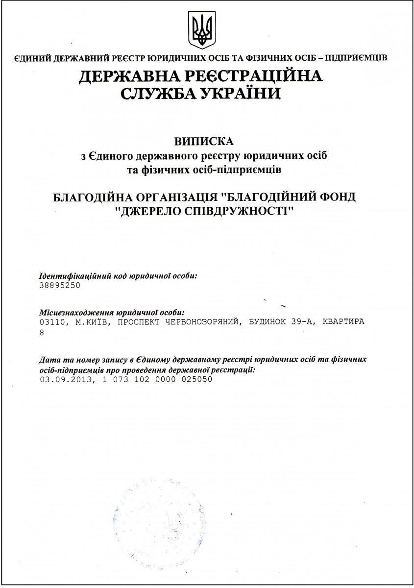Документи Благодійної організації "Благодійний фонд "Джерело співдружності"