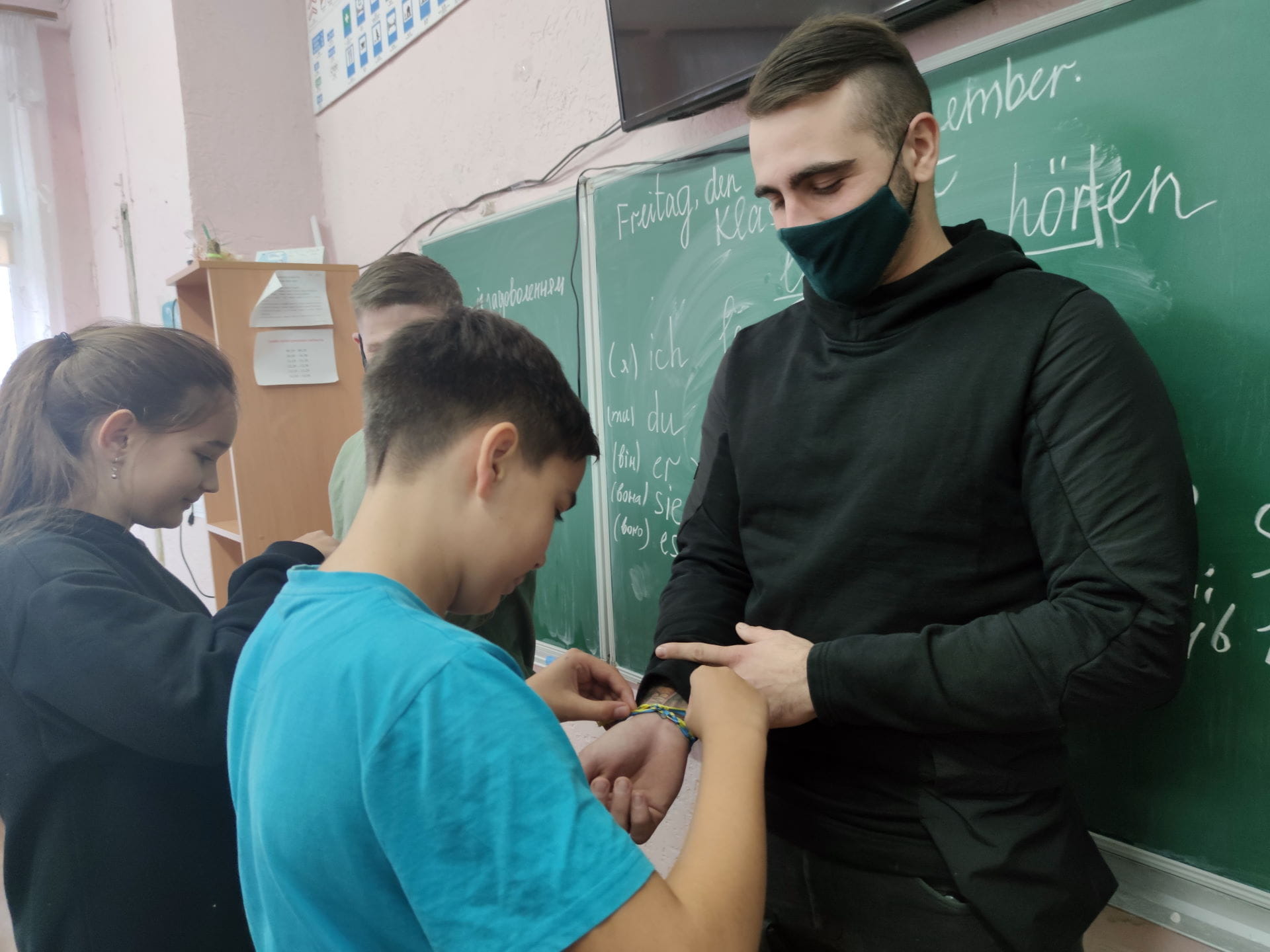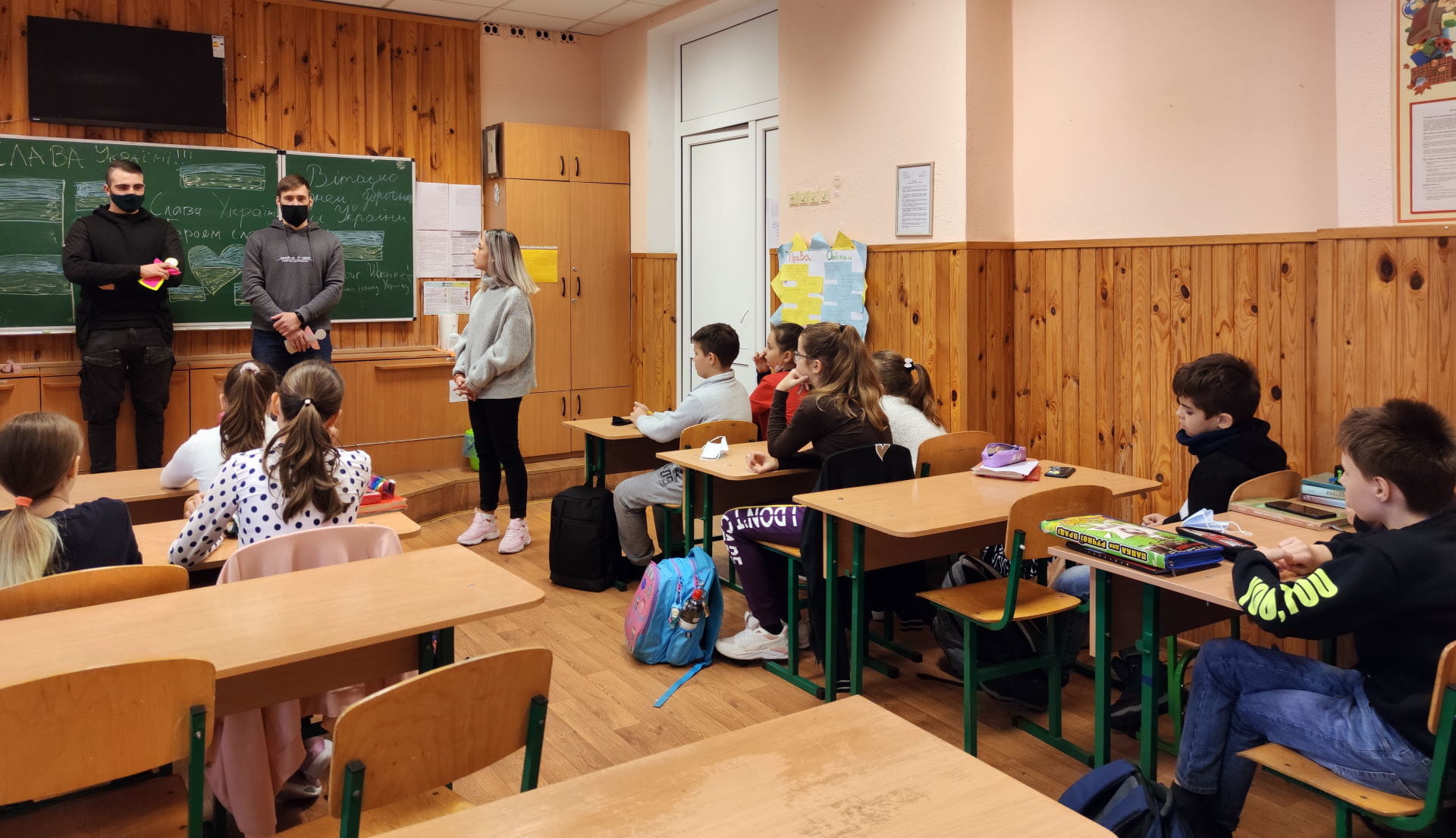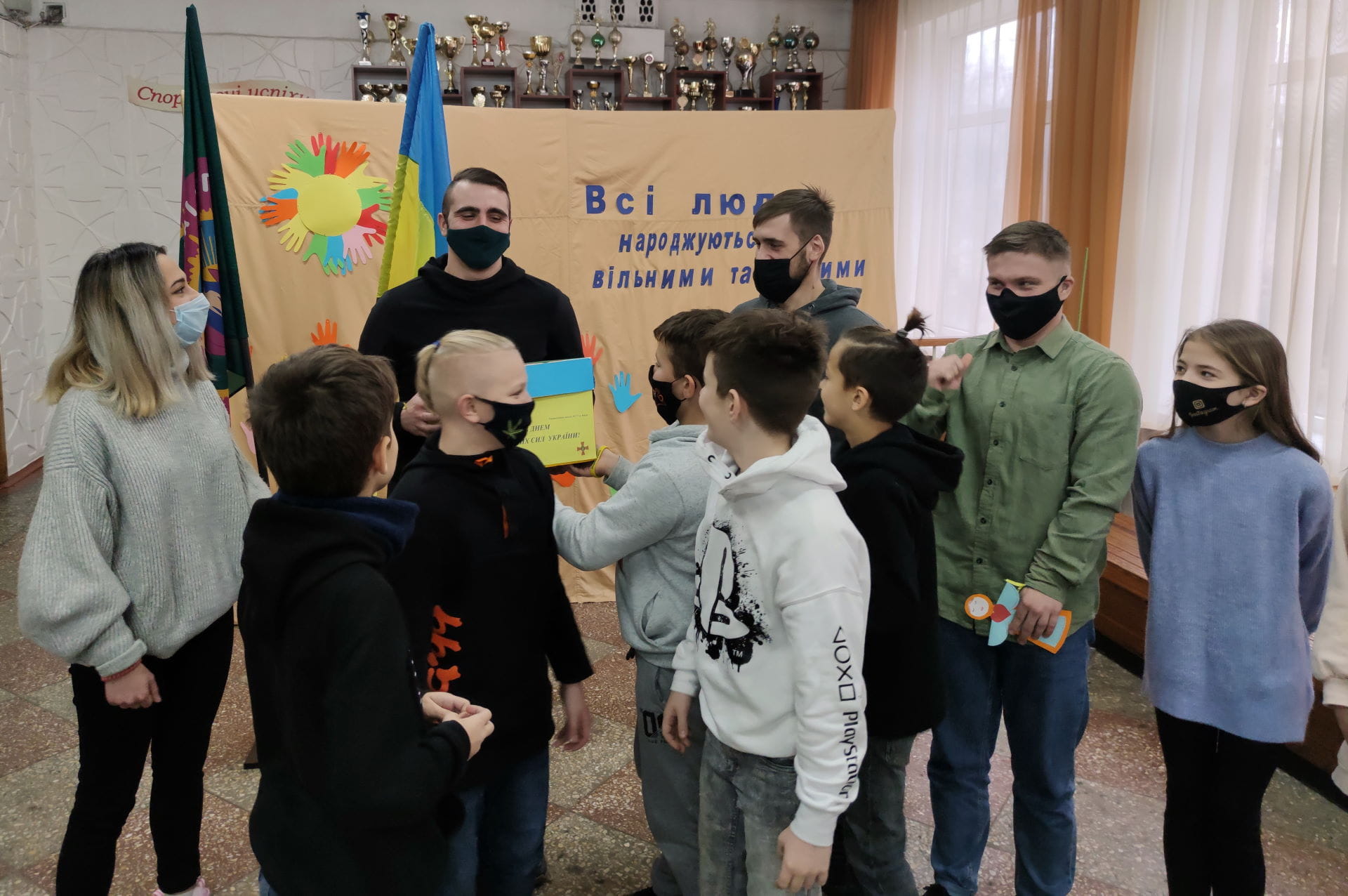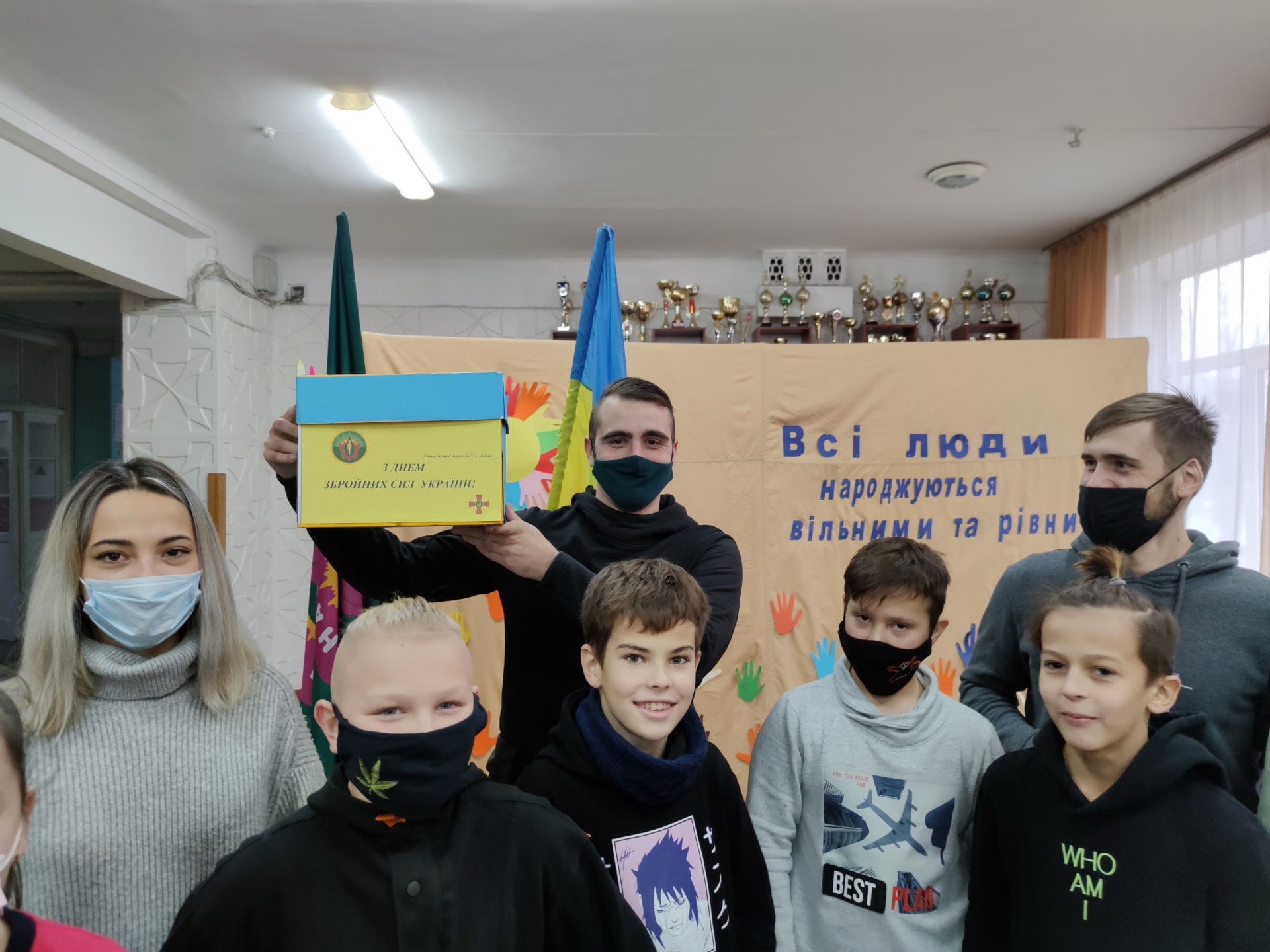 4 грудня до стін нашої школи для зустрічі із 1-А, 5-Б і 5-В класами завітали військовий волонтер Світлана Бондаренко і троє розвідників - Олександр, Олексій та Дмитро, котрі щедро ділилися зворушливими історіями зі свого військового життя, закликали бути патріотами рідної землі та не припиняти нести у серці віру у світле майбутнє України. Вітальні листівки, малюнки, жовто-блакитні браслети-обереги й янголята-охоронці, виготовлені дітьми заздалегідь, принесли гостям неймовірну душевну радість, а учням - гордість за тих, хто боронив і боронить кордони незалежної України.