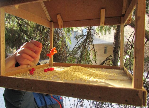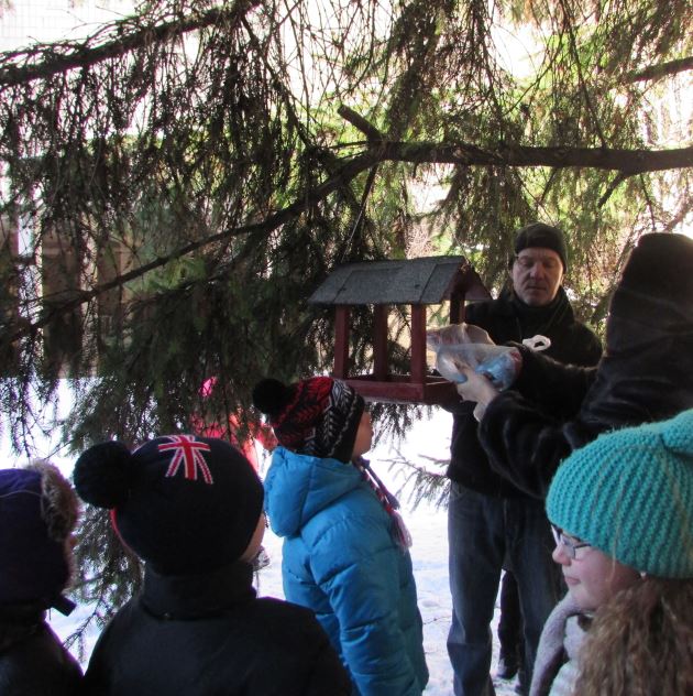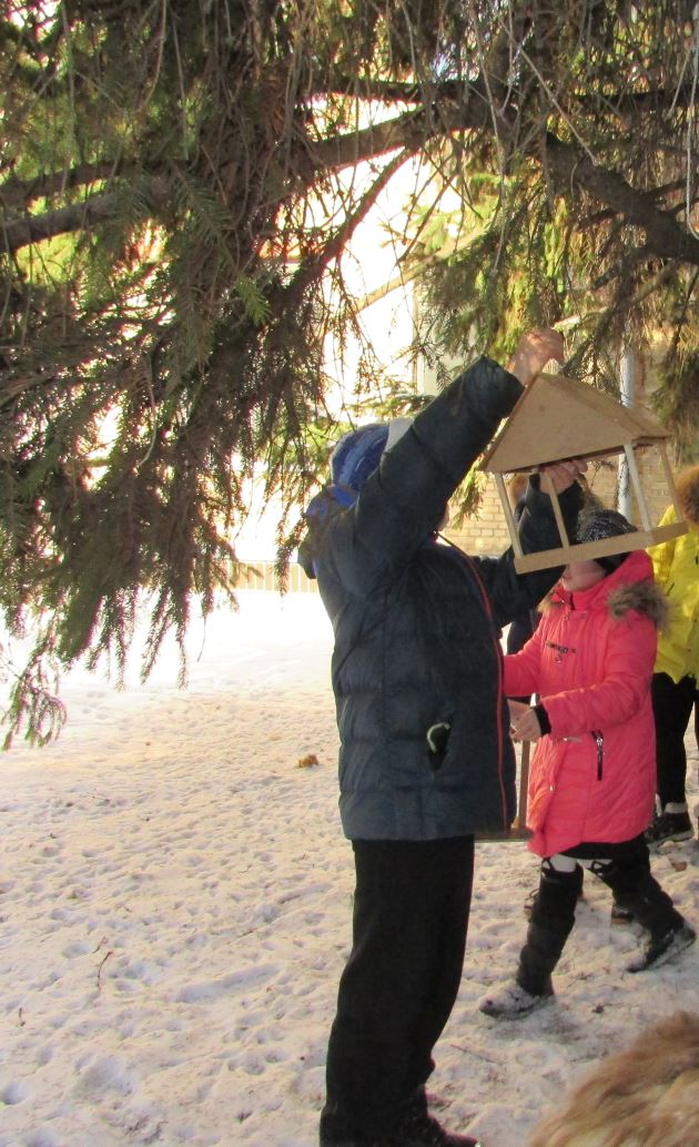 26.01.2018У рамках проекту «Будуємо мости партнерства» учні 3-Г класу та їхні батьки протягом зимових канікул у тісній співдружності виготовляли годівнички для птахів. Під керівництвом класного керівника Левченко О. П. діти вивчили пташині уподобання та підготували корм. 25 січня «їдальні» були прилаштовані батьками та учнями на деревах пришкільної території, чергування у будиночках для птахів теж встановлено.
