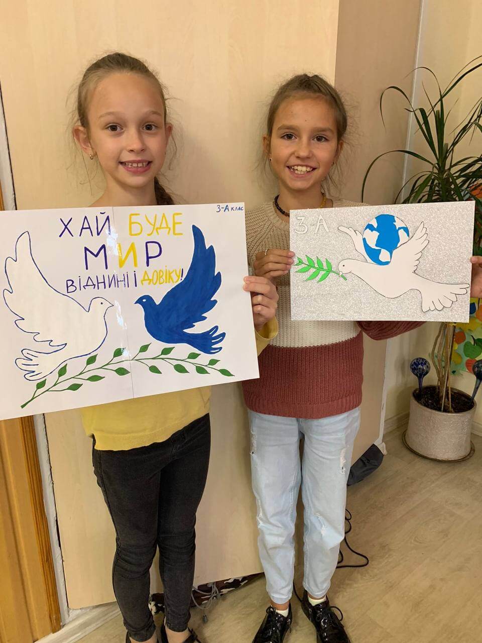 З нагоди Дня миру у спеціалізованій школі №173 відбулася загальношкільна акція «Мій голуб миру», в рамках якої здобувачі освіти 1- 11 класів виготовляли символ миру – білого голуба, а гасла про мир, згуртованість, дружбу, надію на рідній землі об’єднали шкільне товариство у цей день.