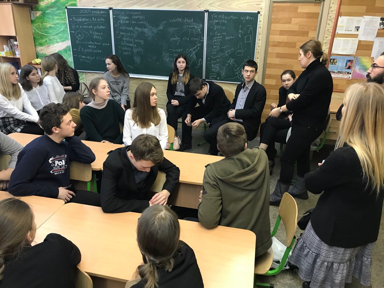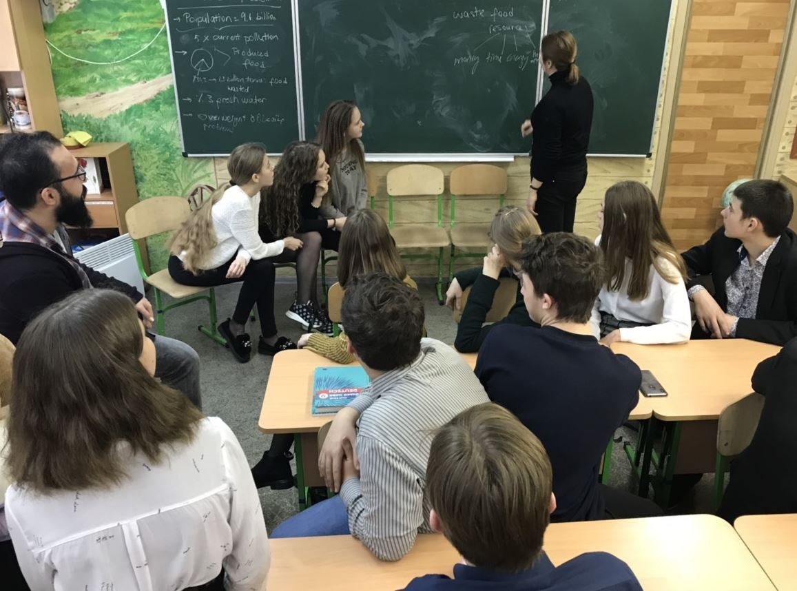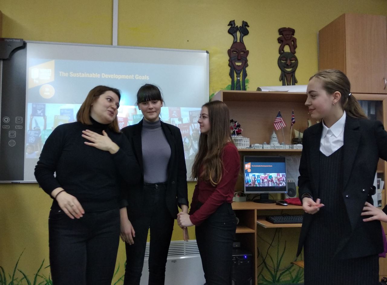 4 лютого стажери міжнародної молодіжної громадської організації АЙСЕК з Туреччини Ozge Coskuner та Cihan Yardimci провели ряд занять англійською мовою для учнів 8-11 класів, на яких познайомили дітей з глобальними цілями сталого розвитку ООН на 2015-2030 рр., привернувши особливу увагу підлітків до питань екології та споживання природних багатств. Найактивнішими учасниками, за оцінкою гостей, були 9-А, 9-Г та 10-А класи. Стажери, залучивши дітей до рольової гри, продемонстрували старшокласникам, як людина недбайливо використовує природні ресурси.