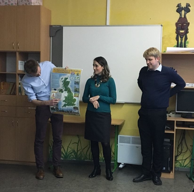 28 березня волонтери GoCamp з Великої Британії відвідали нашу школу. Це молоді науковці з Англії та Шотландії, які є учасниками програми ядерних досліджень у сфері атомної промисловості. В Україні вони вивчали наслідки Чорнобильської катастрофи. Під час зустрічі з учнями 7-11 класів розповіли про історію та географію Британії, про себе, свій досвід, спростувавши деякі стереотипи щодо характеру та звичок британців, відповіли на велику кількість запитань про британську систему освіти, визначні місця, про королівську родину, популярні види розваг та про спорт у Британії, поділилися враженнями про Україну та українців.