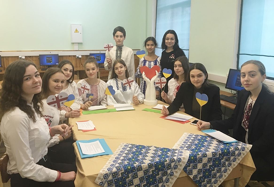 13 лютого вчителі англійської мови Вітковська Л.В. і Рубанік Т.М. та учні 9-А, 9-Г класу вдруге провели Скайп-урок зі школою-партнером з м. Тбілісі (Грузія), присвячений Дню Святого Валентина. Учні обох шкіл англійською мовою називали відомі пари з кінофільмів та мультфільмів, презентували історії кохання з літератури та історії своєї культури, виконували пісні про кохання українською та грузинською мовами. Наші учні розповіли трагічну історію кохання українських Ромео та Джульєтти з Гуцульщини – Марічки та Івана з відомого твору М.Коцюбинського «Тіні забутих предків», а пісня з кінофільму Сергія Параджанова «Вербовая дощечка» у виконанні учениці 6-го класу Поліщук Софії викликало неабияке захоплення у грузинських учнів та вчителів. На завершення школярі провели короткий мовний майстер-клас, під час якого навчилися казати I love you грузинською та українською мовами. Директор грузинської школи Тамар Чантладзе висловила сподівання на продовження традиції онлайн-уроків між школами-партнерами.
