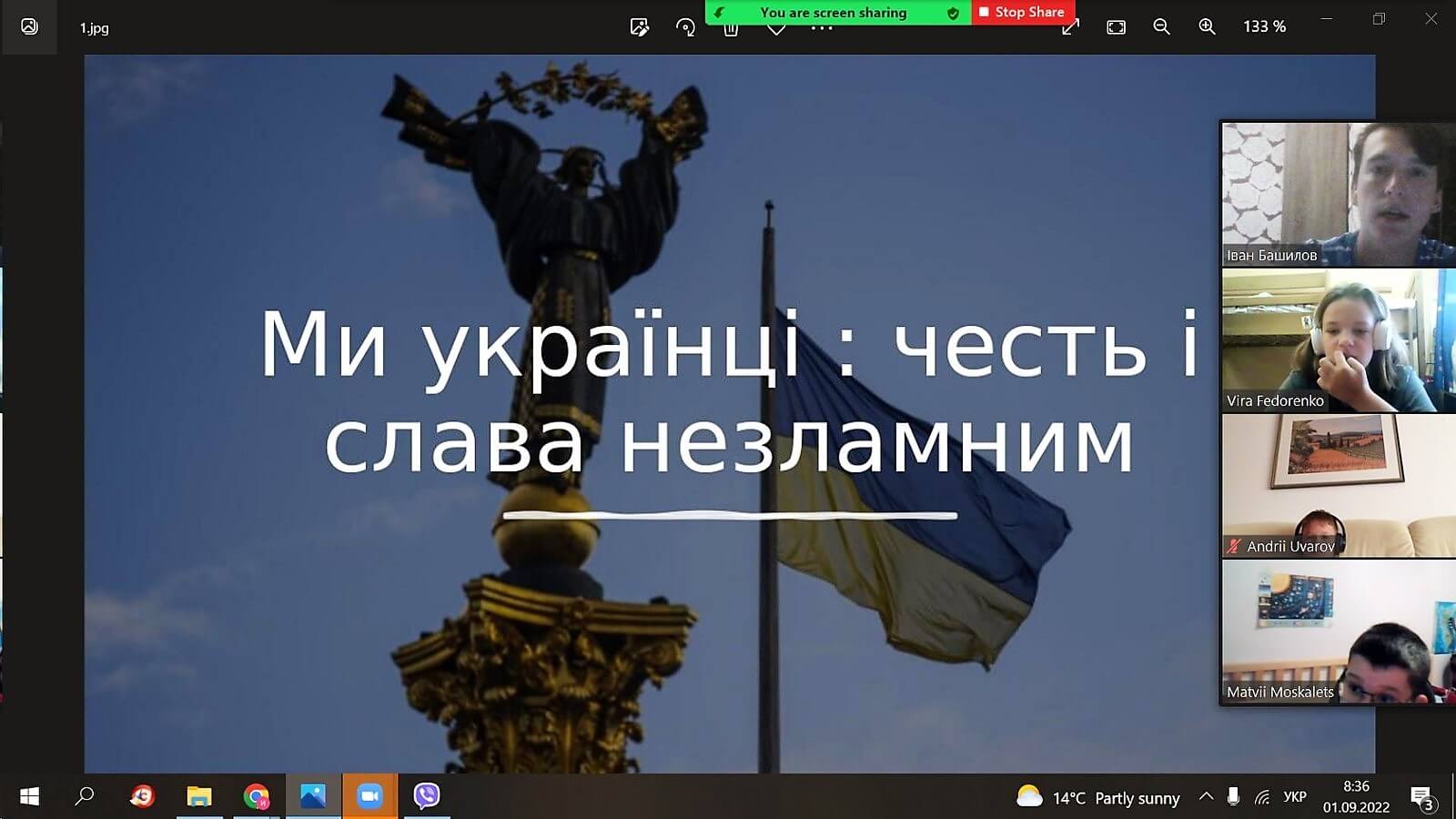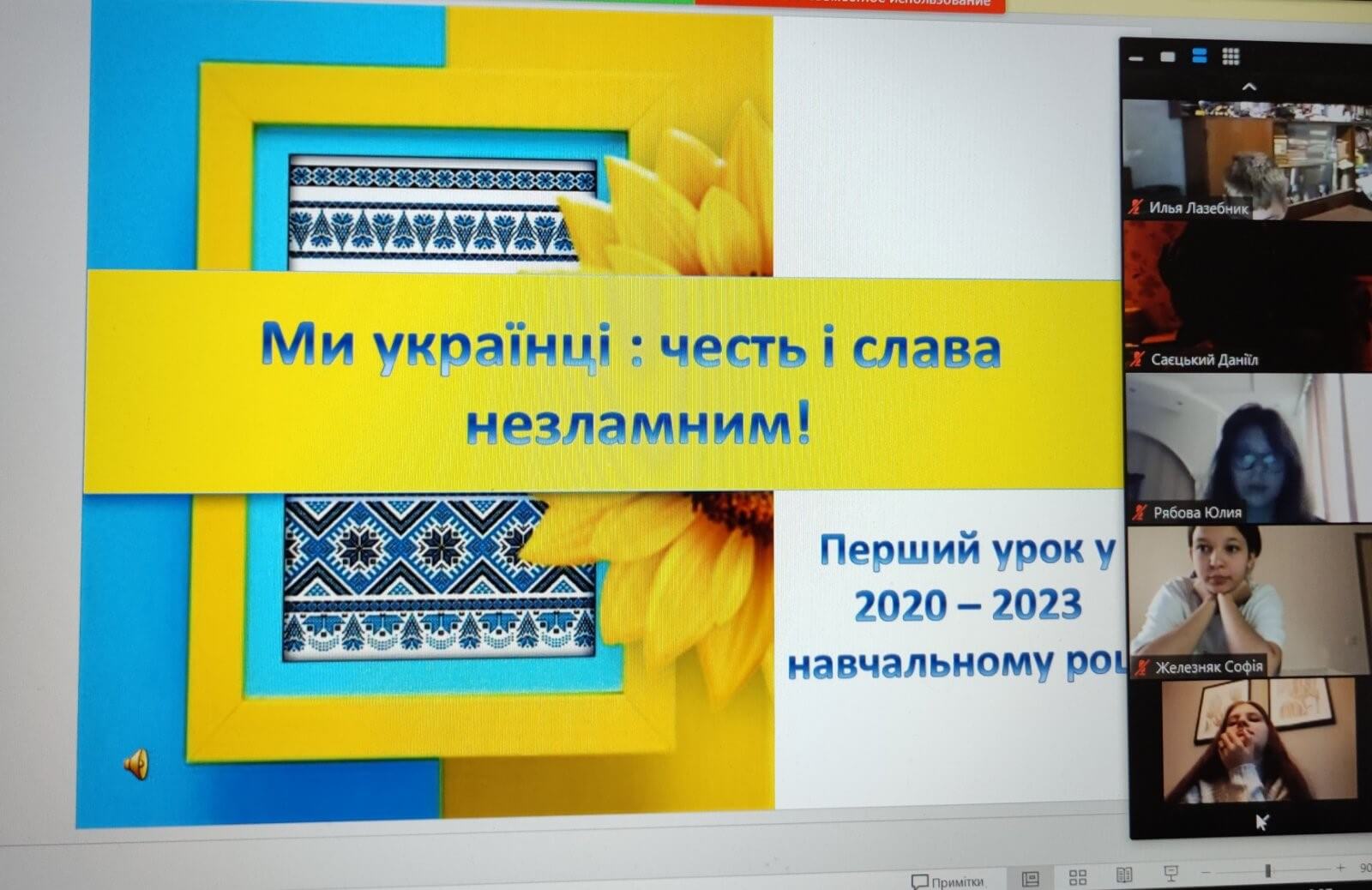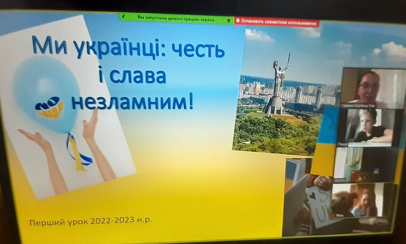 Перший дзвоник-2022 покликав дітей не за шкільні парти, а до екранів комп'ютерів та смартфонів. « Ми українці: честь і слава незламним!»- під таким гаслом пройшов перший урок у 2-11 класах.. На ньому здобувачі освіти сформували усвідомлення, що таке Батьківщина, держава, патріотизм, якими були, є і мають бути справжні українці.