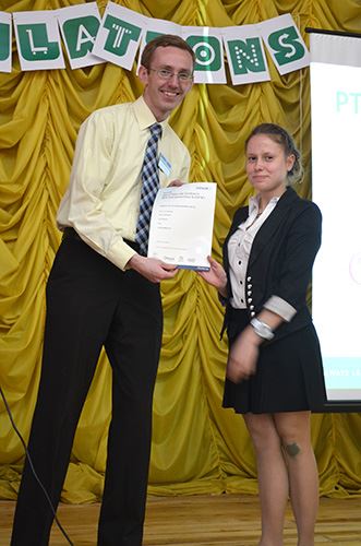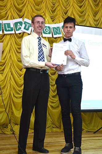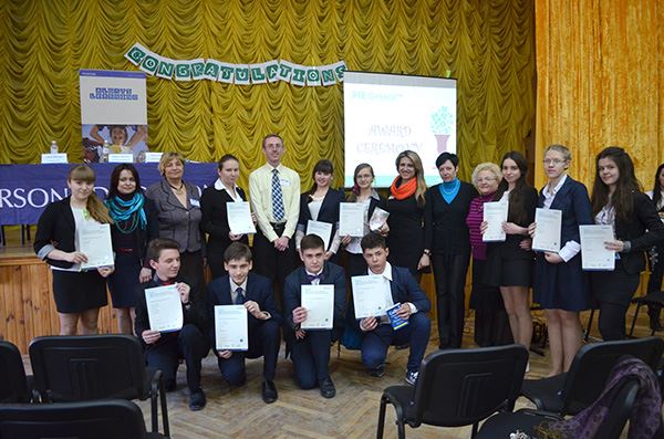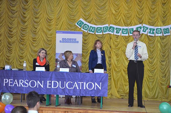 Нагородження проводили: Роберт Хартіган – головний екзаменатор мовних тестів Пірсон в Україні, Марина Малигіна – директор Представництва Пірсон, Олена Міходуй – старший методист Міжнародного освітньо-методичного центру PEARSON-DINTERNAL та Анна Шелест – координатор проекту РТЕ.