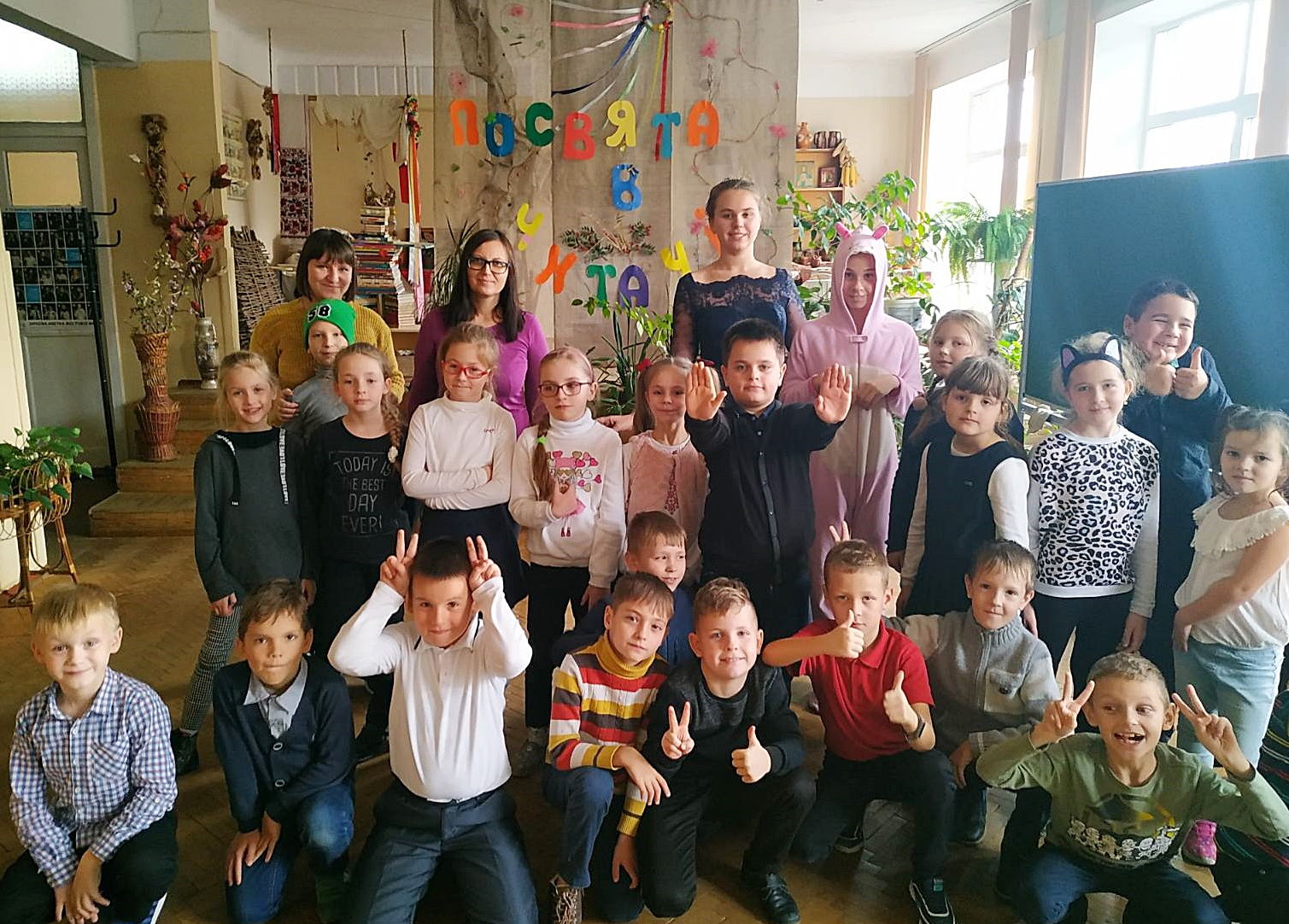 15.11.2019«Хто багато читає, той багато знає», - з таким гаслом пройшла традиційна для шкільної бібліотеки посвята у читачі, підготовлена бібліотекарем Виноградовою Г.О. Учні 2-В та 2-Г класів були раді потрапити до Книжкового королівства, там познайомитися із Королевою Книг, поспівчувати Книзі разом із Зайчиком, вивчити правила роботи з книгою, а вже у реальному життя стати читачем шкільної бібліотеки.