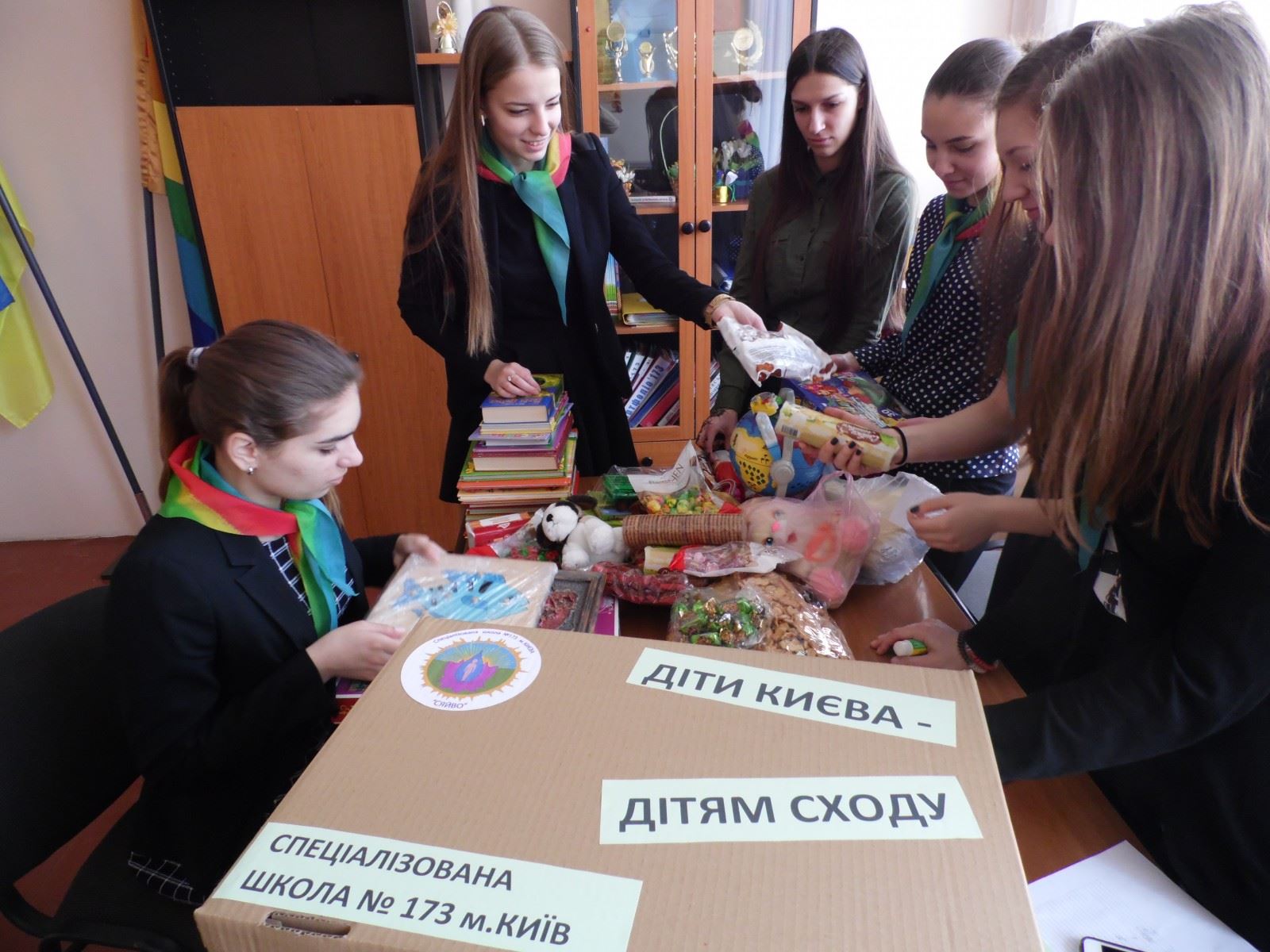 18 квітня 2016 року учні школи №173 долучилися до акції «Потяг доброчинності», яка була ініційована управлінням освіти Солом’янського району. Солодощі, книги, іграшки будуть відправлені дітям Сходу України.