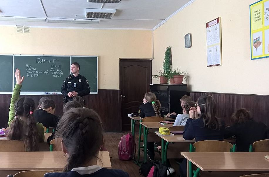 2 квітня із п’ятикласниками та чотирикласниками школи говорив інспектор патрульної поліції лейтенант Лободжінський Максим Вікторович про можливі наслідки поганої поведінки. Цього разу – про булінг - соціальну проблему всього світу. Булінг (bullying, від анг. bully — хуліган, забіяка, задирака, грубіян, насильник) визначається як утиск, дискримінація, цькування. Цей термін означає тривалий процес свідомого жорстокого ставлення (фізичного і психічного) з боку дитини або групи до іншої дитини або інших дітей. Мотивацією до булінгу стають заздрість, помста, відчуття неприязні, прагнення відновити справедливість, боротьба за владу, потреба підпорядкування лідерові, нейтралізації суперника, самоствердження тощо аж до задоволення садистських потреб окремих осіб.