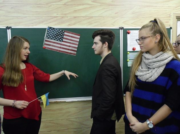 17 листопада урок англійської мови для 11-х класів провела американка Катя Мітелстадт. Зустріч організовано за сприянням Тетяни Хоменко, мами учениці 5-А класу.