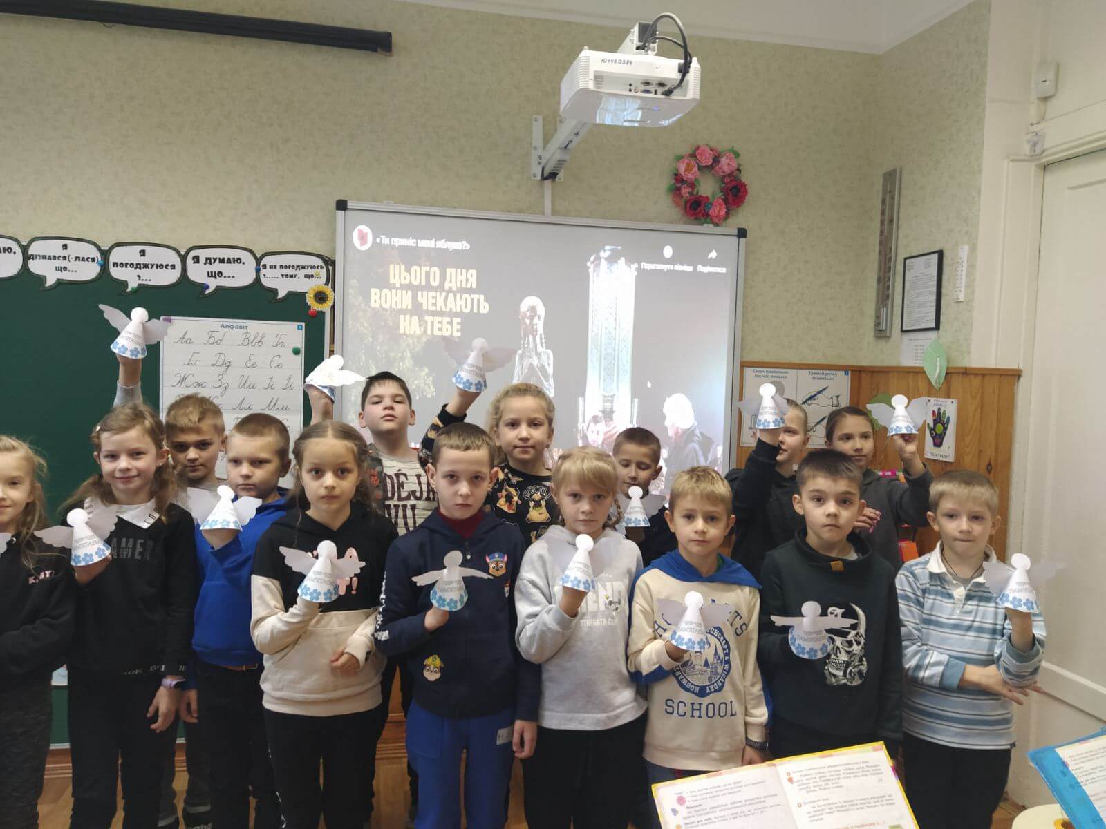 Для учнів 4-х класів з нагоди пам’ятної дати бібліотекарі школи організували захід «Збережи пам’ять. Збережи правду». Малеча подивилася мультфільм «Голодний дух» та обговорила страшні сторінки історії нашої країни.