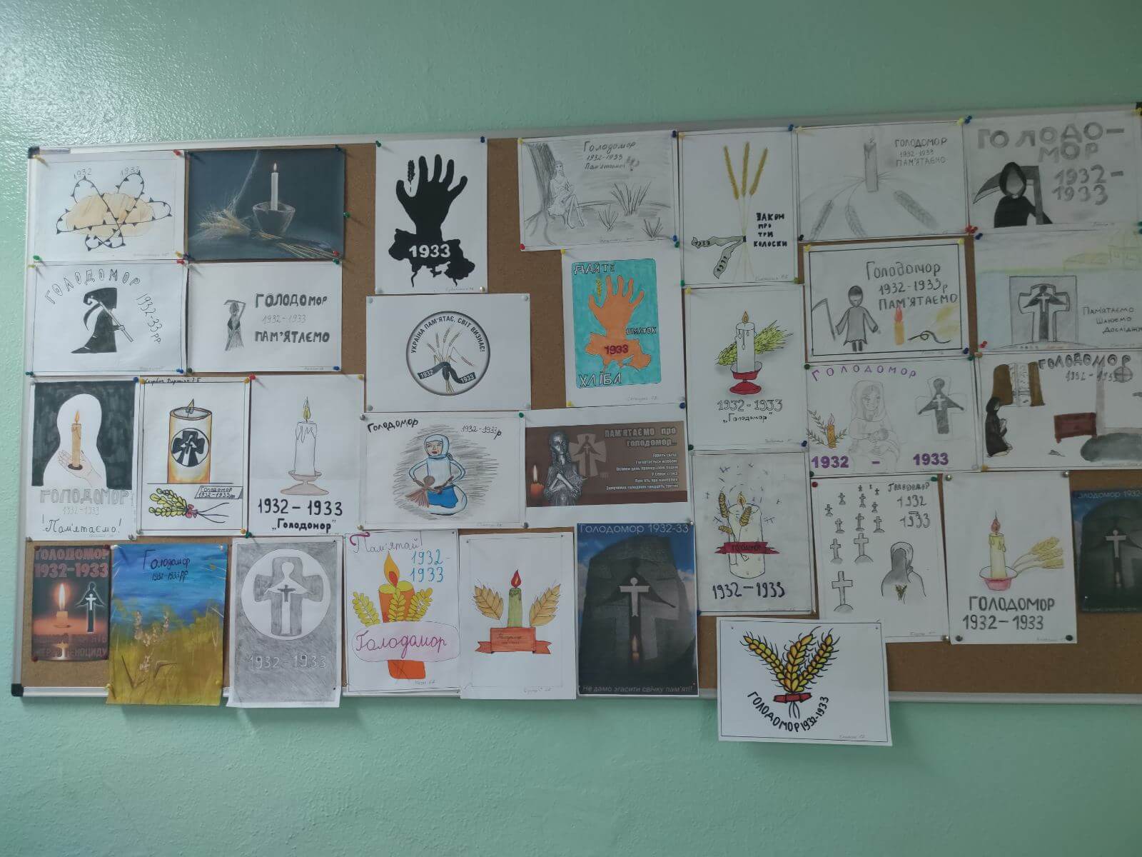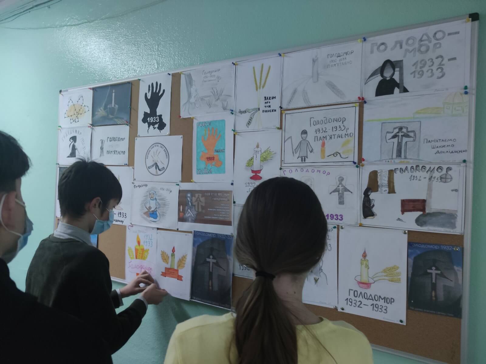 08.12.2021«Україна пам’ятає!» - саме під таким гаслом відбулися пам’ятні заходи у спеціалізованій школі № 173 з нагоди 88-ї річниці Голодомору в Україні. Рада самоврядування «Сяйво» ініціювала проведення виставки малюнків для вшанування жертв жахливої трагедії українського народу.