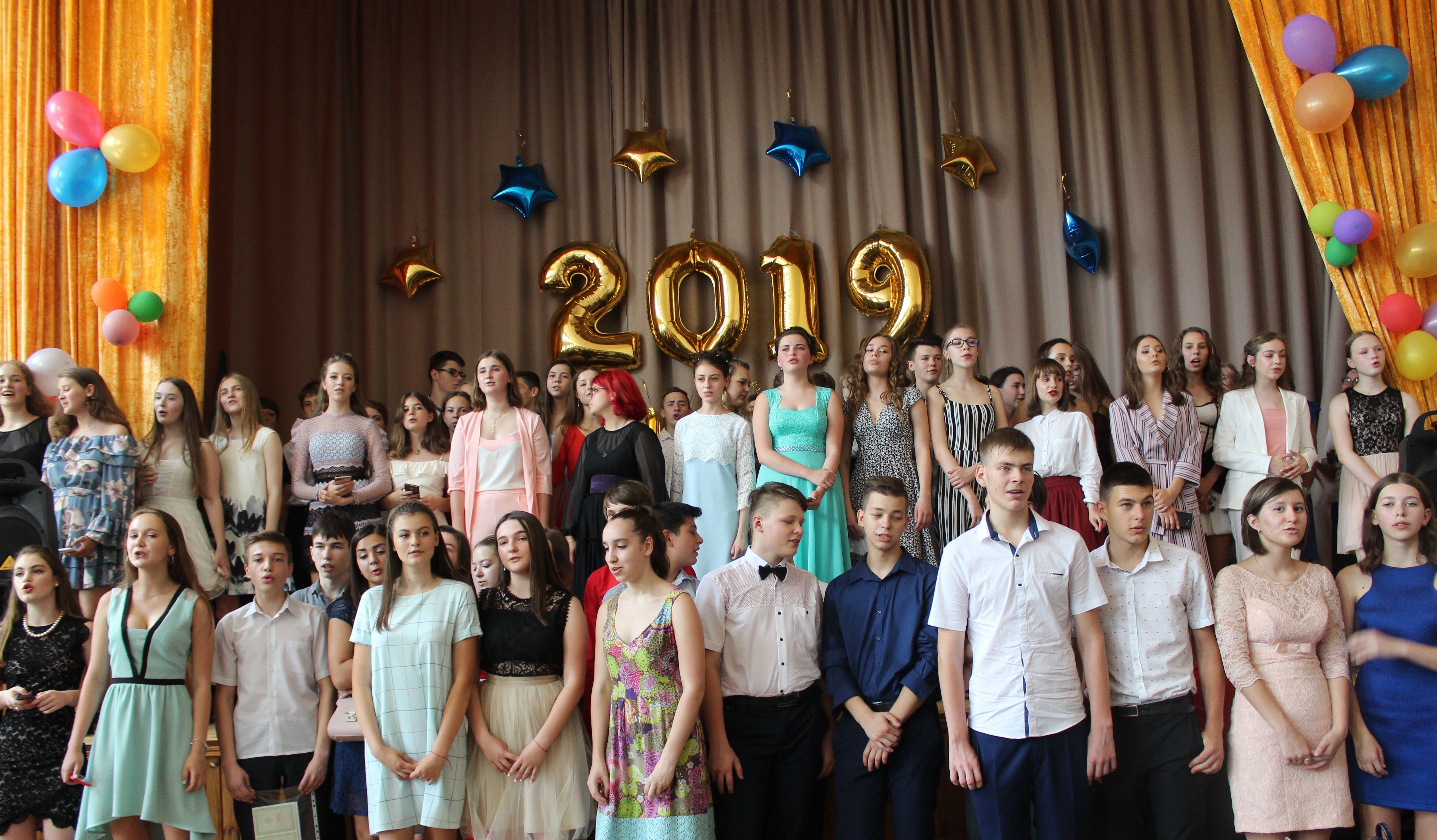 15.06.2019Святково прикрашена турботливими батьками актова зала школи 14 червня тепло зустріла 89 випускників 9-х класів. Випускний – одне з перших яскравих i значних подiй у життi кожного, тому емоції й учнів, і вчителів, і батьків були максимально забарвленими. Спогади, мрії, сподівання, радість і смуток, світла печаль – усе змішалося в одне ціле. Щемливо-ніжні почуття охопили класних керівників Баленко Т.К., Шевченко В.М., Ямпольську Н.Ю., Мащенко Л.І., які своєю жвавістю запалювали дітей на сцені. Серце випускників переповнилося вдячністю до вчителів, тому до них були звернені їхні теплі слова віршів та пісень, що лунали концерті. Випускники показали всі свої таланти, об’єднавши їх у цікаву програму та створивши у залі особливу атмосферу.