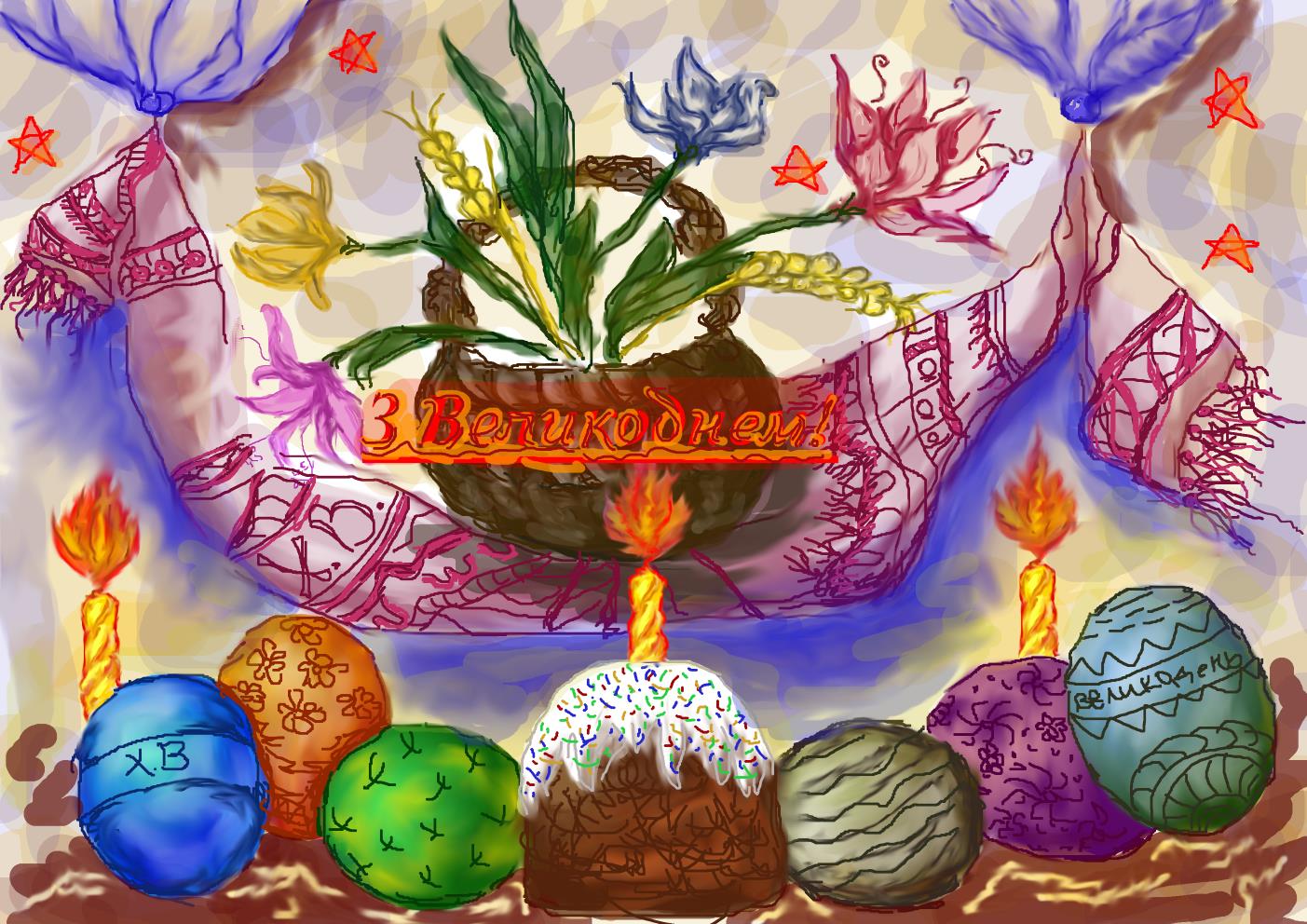 З Великоднем вітає переможець міської олімпіади в номінації "комп'ютерна графіка" учениця 8-Б класу Гапанович Оля