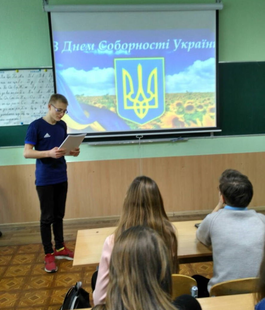 Усвідомлюючи важливість збереження української єдності, учні та вчителі спеціалізованої школи № 173 натхненно розпочали навчальний день з виконання Гімну України. Стимулюванням інтересу до минулого, до традицій, до звичаїв нашого народу стала етнографічна вітальня «Ремесла України», створена учнями 6-7 класів, та вернісаж юних фітодизайнерів «Соборна Україна одна на всіх» з 1-5 класів. Низка виховних годин у класах «Твоєю силою, волею, словом» переконала школярів у бажанні будувати Українську державу в рівноправній єдності всіх громадян незалежно від національності, віри і переконань, бо Свобода, Незалежність, Соборність – це ті неперехідні цінності, які завжди були, є і будуть шановані в Україні.