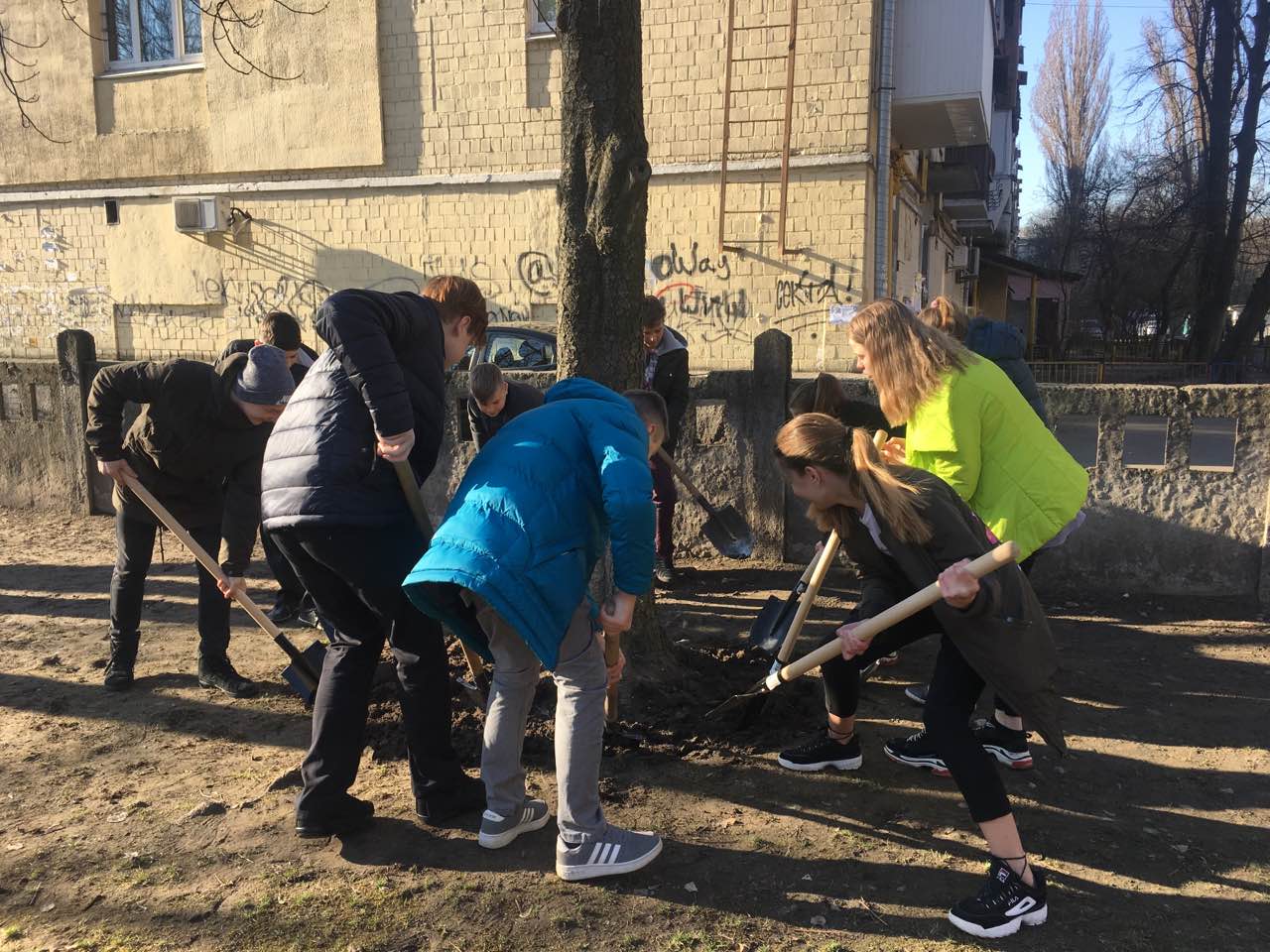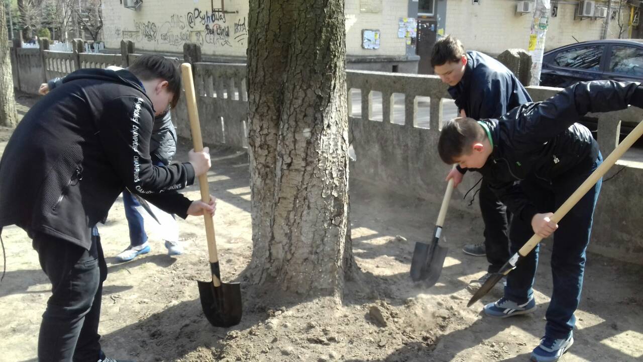 З ентузіазмом, притаманним молодості, юні натуралісти обкопують зелені насадження, підсівають траву, планують висаджування квітів, що мають бути закупленими за гроші, виручені з акції «Кришкам – кришка» (останній день акції – 19 квітня).