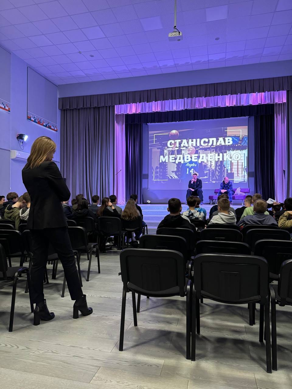 25.11.2024Зірка українського баскетболу, дворазовий чемпіон НБА, просто неймовірно прекрасна Людина Станіслав Медведенко завітав до Ліцею №173 м.Києва.
