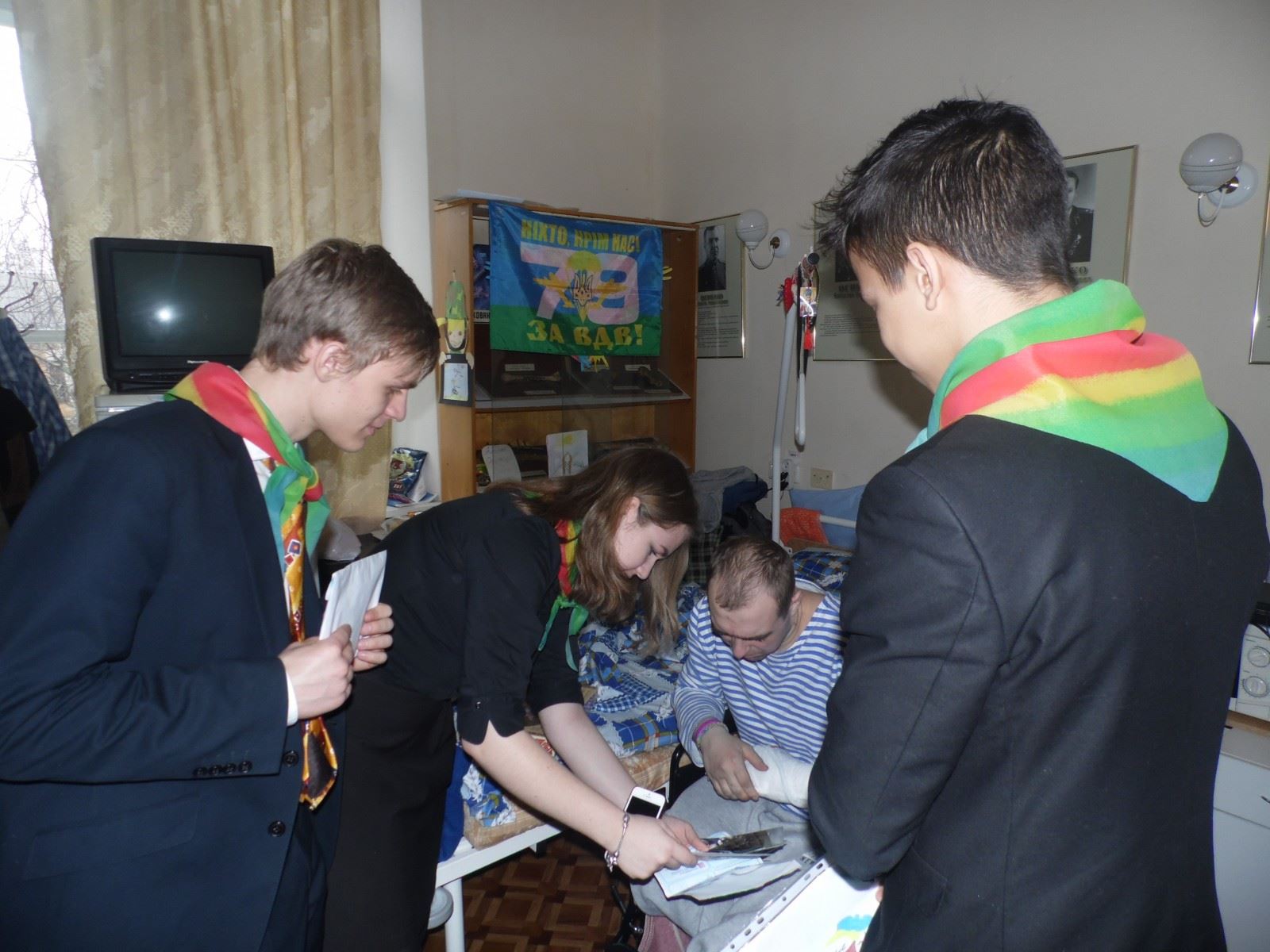 Учні відвідали у військовому госпіталі бійця АТО Олексія Замірка, подякували за те, що, ризикуючи здоров’ям і життям, роблять для нашої країни молоді солдати.