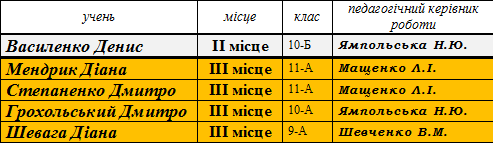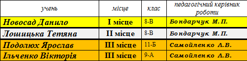 Переможці І (районного) етапу конкурсу-захисту робіт Малої академії наук (МАН) сш № 173 у 2014-2015 н.р.