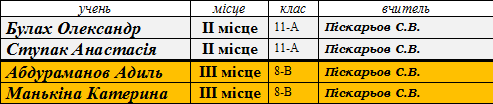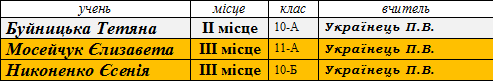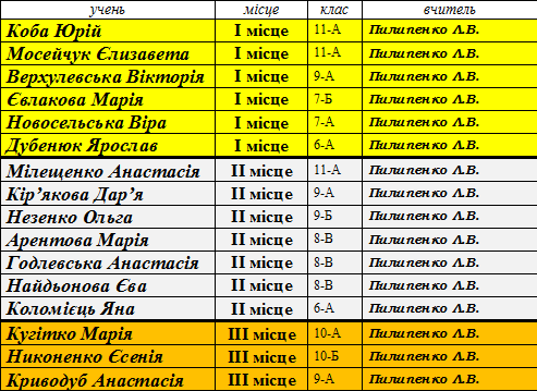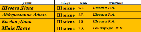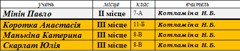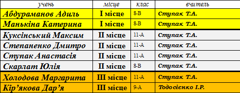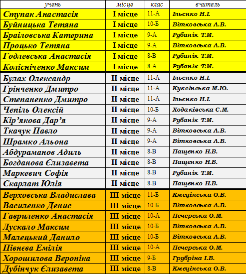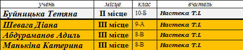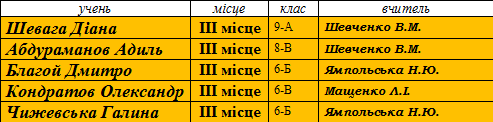 Переможці ІІ (районного) етапу предметних олімпіад сш № 173 у 2014-2015 н.р.