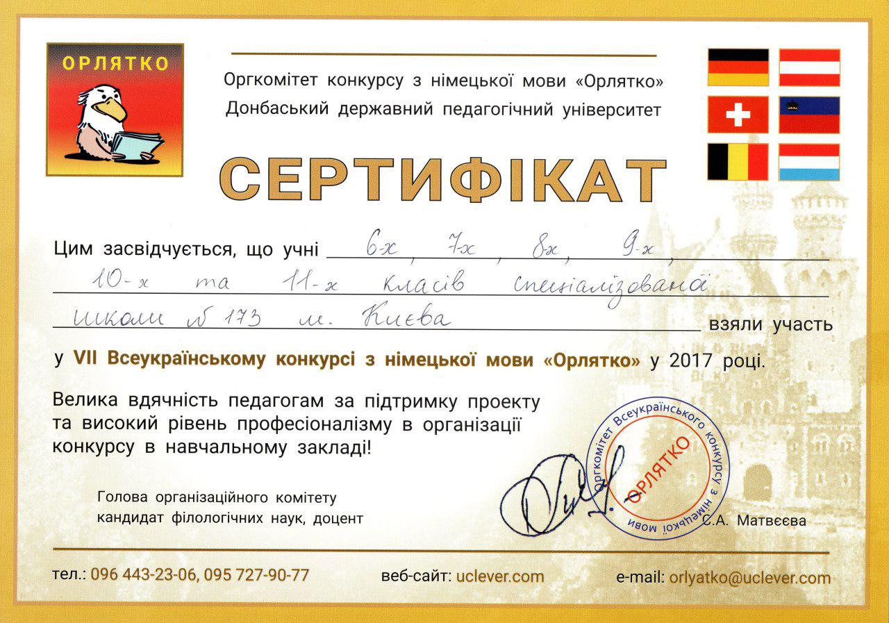 Результати всеукраїнського конкурсу з німецької мови "Орлятко"-2017